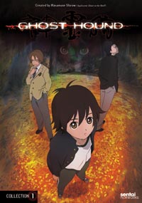Have you found anime series to be too generic of late? Do you hunger for something creatively different in your anime viewing? Ghost Hound may be the series for you. From its earliest scenes it avoids the norm by getting its characters involved in the supernatural through the window of advanced psychology. It looks at the biological processes involved in how emotions like fear, hate, and disgust can affect memory, discusses how visions of spirits, angels, and devils can be deliberately induced, and examines potential underlying causes for OBEs, enough so that it calls into question the supernatural phenomena its characters are experiencing without denying them; in fact, it still gives its characters ample reason to believe that their “soul traveling” is real. It also looks in-depth at how past psychological trauma can affect a person's fears and perception. The result is a supernatural story wholly unlike anything else in its genre, one which, at times, can be quite impressively creepy. The mood, tone, feel, and especially sound of the story puts it in rarefied air somewhere between Serial Experiment Lain and Boogiepop Phantom, the two series which Ghost Hound most closely resembles. (The former should be no surprise, since the two series share a common director.) With the former it shares the sense of distorted and shifting reality; with the latter it shares the sensibilities of individual psychology, how that affects characters dealing with fear and other stressors, and how traumatic events can have long-lingering consequences even for those not directly involved. It occasionally gives the viewer a first-person perspective on the “soul traveling” experience of Taro and joins the viewer with Taro in discovering possible psychological foundations for the things he is experiencing. It also looks at how Masayuki's fear of heights might be connected to an incident involving a fellow student's death and how Taro glaringly remembers certain minor details from the kidnapping (such as a buzzing fly) but not ones he considers most important (such as the last words his sister spoke to him). Not all of the story is grounded in psychology, however, and in fact the series' biggest weakness is that it sometimes goes overboard in delving into its dissertations on psychological phenomena; given that, is it any surprise that Masamune Shirow was the original creator? The actual plot finds plenty of time to explore the development of the boys' OBEs from initial random experiences to more controlled later forms, which leads to the series' name finally being justified around episode 10. It develops an underlying implication that something even more sordid may have been going on with the seminal kidnapping incident, and that the man accused may or may not have been the right culprit. It suggests that the sudden increase in supernatural experiences towards the end of this 11-episode run is part of a bigger developing picture, and that the boys' ability to soul travel, and Miyako's extrasensory abilities, might be part of that picture. Along the way it does an exceptional job of subtly ramping up tension to create scenes almost certain to leave viewers on edge, although the almost-too-cutesy look of the boys in their spirit forms brings one such superb scene crashing down with startling (and unwelcome) abruptness and partly sabotages others. The characterizations are a more typical, if somewhat subdued, mix, with Taro as the low-key one, Masayuki as the gregarious one, and Makoto as the angry one. Despite her limited lines and a lot of her screen time involving just staring at things, Miyako may actually be the most interesting of the core cast, as her attitudes are more implied than openly displayed. She also has a greater aura of mystery about her, a direct result of the series rarely showing us what she actually sees and instead only suggesting it. Totally absent are any extreme-personality side characters; in fact, Miyako's priestly father is one of the most grounded individuals in the series rather than the more typical role of being one of the extremists. Many of the side characters are, in fact, fairly dull. The strength of the series does not lie in its artistry, which makes heavy use of CG to create the spirit creatures and OBE perspectives and is not among the smoother series at pulling it off. The look of the boys in their spirit forms is somewhat reminiscent of the CG-animated version of Casper, The Friendly Ghost, and while too cutesy for its own good, the image of things moving around inside their spirit forms can be intriguing to look at. The series is at its visual best during a few scenes where ordinary images are distorted into things disgustingly monstrous, but that is not often. The non-CG artistic and animation effort headed by Production I.G is not one of their better efforts, either, although character designs are just different enough to distinguish them from the masses. The sound in the series is something special, however, to the point that watching this set of episodes on anything less than a surround sound-equipped system is doing the title a disservice. The score actually only infrequently uses true musical numbers and instead depends much more heavily on little snippets, lingering notes, electronic sounds, or sound effects, including ticking clocks, speech electronically distorted to the point of incomprehensibility (especially when characters are speaking in the recap scenes at the front of most episodes), and exaggerated versions of innocuous sound effects such as footsteps, electronic hums, and computer mouse clicks. What musical numbers are used contribute directly to the weirdness and sense of distortion of the whole piece, an effect somewhat similar to the use of sound in Boogiepop Phantom but far more pronounced. In fact, the impact and effectiveness of the whole series depends most heavily on the mood that the score sets. Appropriately-named opener “Poltergeist
