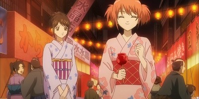 This week's episode finds the usually chipper Kondo in a terrible mood. Despite buying her a brand new yukata, Otae refuses to accompany her "gorilla stalker" to a local summer festival. (Telling her the garment complements "washboard" chests proved to be the final nail in his coffin.) Sogo and Hijikata find him terrorizing happy couples at the festival, but driven by fear and pity, neither can bring themselves to step in. After donning a sentai cockroach mask, Kondo runs into Otae and Kagura, but neither seems to recognize the familiar face lurking beneath the mask. When Kagura runs off, Kondo gets what he wanted all along: a festival date with Otae.