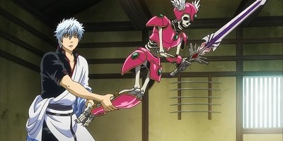 In this week's first segment, seldom-seen swordsmith Murata Tetsuko sets off in search of a rare metal and (in a shocking lapse of judgment) leaves the Odd Jobs crew in charge of her shop. While perusing Tetsuko's wares, the gang comes across a sword that's straight out of an old-school RPG. In addition to looking truly out-of-this-world, the sword also has the armored skeleton of its previous owner firmly attached to it. The other members of this unfortunate hero's party—an adventurer, a cleric, and an elderly Dumbledore-esque wizard—soon arrive to check on Tetsuko's progress, insisting that time is of the essence in repairing their late friend's sword. Immediately following their departure, the demon lord that the party is out to destroy shows up to drop off a mystical sword of his own for repairs. (Turns out he damaged this planet-conquering weapon while using it to open a can of peaches.) Predictably, Gintoki and Kagura half-ass these jobs, ultimately rendering both clients' swords useless. In the end, the forces of good and evil are able to put aside their differences and unite against a common enemy: the staff of Odd Jobs Gin-chan.