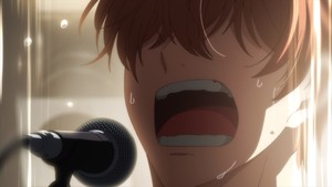 Given has been building up to this concert scene since the beginning, and Mafuyu's performance is pure catharsis. Buoyed by Ritsuka's words and the pressure of his own feelings boiling in his chest, the words he's been searching for finally burst free. The shocked expressions on everyone else's faces are priceless, but the rest of "the seasons" manage to keep the song together as Mafuyu spills his feelings of loss, guilt, and hope. It's a scene filled with sound and light—the complete opposite of last week's melancholic elegy. Like the concert audience, I felt a tightness in my own chest swell up and then release when the rawness of Mafuyu's vocals interlocked with the instrumental prelude. They admit afterwards that his guitar playing was sloppy to downright bad, but in the moment, it was the channeling of his emotions directly into his music that created so much power. Music lets us express so much that we can't normally put into words. Mafuyu has struggled all his life with communicating his feelings to others, but on that stage, in that moment, everyone could know his heart.