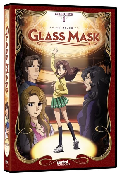 Unless you're a big fan of the shoujo genre, you may not have heard of Glass Mask (Garasu no Kamen), one of the best-selling shoujo manga series ever. Written and illustrated by Suzue Miuchi for over 30 years, Glass Mask has been animated several times now; this release represents the first half of the most recent TV version. It's no secret why the story has remained a staple of the genre for so long; it is, at its core, a classic story about a seemingly average girl who discovers she has a special talent for acting and thus winds up in the maelstrom of hope, angst, romance and melodrama that churns beneath the proscenium arch. Right upfront, it's clear this new version of Glass Mask is aiming for a retro look; the character designs and animation aim for the feel of the cel-drawn days of yore, and it pulls it off very well, for better or worse. Animation looks a bit ugly during non-key scenes (just as it did back then), but expressions, especially emotions reflected in the eyes, are so real and raw that it's actually startling to see them on an animated face. What also works well is an homage to the transformation sequences that have somewhat gone away along with cel animation (and the slow fade of the magical girl genre). Watching the masks move around while Maya, eyes blank, seeks out the next character she needs to “wear,” never gets old. Unlike the character designs, the setting is definitely modern day. Even though the original story started in the 70s, there's a timeless feeling to the world they live in; yes, there are modern conveniences like cell phones, but you never feel like you're being beaten over the head by a giant sign that says, “Welcome to the 21st century!” Even the music, both in the background during key scenes as well as during the opening and closings, is toned down and plays into the series without trying to establish itself as trendy or modern. The “when” is now, but it's the actors, not the stage, that make this series work. Maya, the main heroine, fortunately doesn't fall prey to a lot of the weaknesses that other “average, I'm-not-very-good-at-anything” characters do: she's not overly clumsy – simply absentminded in the way a kitten is when you suddenly dangle a fuzzy object in front of it – and she's very rarely whiny, instead focusing on looking both inside and outside of herself to figure out what she's lacking to rise to the challenge. At the same time, it's sometimes hard to really connect to Maya on a personal level due to the tunnel vision that she gets when she's focused on acting and the sometimes dangerous lengths she goes to in order to grow as an actor. Thankfully, a rich cast of characters are introduced to give Maya more depth and range, and these characters, at least early on, are the best thing about this series. A bush with a single rose on it might be pretty, but that bush doesn't really start to stand out until the other buds are all in bloom. Likewise, the first episode starts out a bit slow with the introduction of the starry-eyed Maya, but it really starts to pull you in once a few episodes pass, characters like Tsukikage, Ayumi and Masumi Hayami, the (stand-in) president of the Daito Corporation, are introduced, and the rivalry begins between the Ondine and Tsukikage Acting Troupes, fueled by The Scarlet Angel subplot. The first half of season one finds a healthy balance between Maya's career and her relationships with those around her. Maya's cheerless, small-minded mother, who becomes dangerously obsessive with making sure her daughter never accomplishes anything or chases after her dreams, initially stands in her way, and one almost wishes she kept doing so if only to continue the most meaningful and poignant external threat Maya must face in her career. Tsukikage, whose obsession with Maya goes in the exact opposite direction to the point where she'll even jeopardize her own health to see Maya's acting skills grow, fills the role of surrogate mother perfectly with a mix of tough love and true love that never gets old. In fact, her slightly insane personality makes her one of the most entertaining characters in the series. Maya also gets direct support from friends, like Rei Aoki, passive support from soon-to-be-rival Ayumi, romantic support from Ondine actor Sakurakouji, and mysterious support from “Mr. Purple Roses.” In contrast, other jealous actors, Director Onodera and Hayami (at least publicly) all work towards bringing Maya and the Tsukikage Acting Troupe down. While both the positive and negative influences on Maya make for interesting story and character development, it also shines a big spotlight on the second half of the season's main flaw: the inability to bring a satisfying or timely end to any relationship. Maya and Sakurakouji's budding relationship gets a lot of time to grow, and it's interesting how, unlike with most girls who obsess over their crushes, he plays second fiddle to her acting career. But as the series continues, it feels like it doesn't really know what to do with Sakurakouji anymore: he ends up getting ignored, tapers off into the background, and then is handed a very unsatisfying break-up scene that feels more forced than emotional. Maya's mother gets the same “wait, what happened to her?” treatment, even though her story is technically still going on, and lesser characters like Onodera and the gang from Ikkakujuu Troupe are so suddenly dropped and discarded that it hardly seems like it was really necessary to give them names and personalities. The two characters who do manage to stick around for the second half of this play – Ayumi and Hayami – aren't exactly main character material. While a lot of emphasis is put on Hayami's feelings for Maya, there really isn't any reason to get attached to him outside of the fact that he's supportive of Maya's career. As for Ayumi, she goes out of her way to drive away everyone in her life in order to strike out on her own, and beca