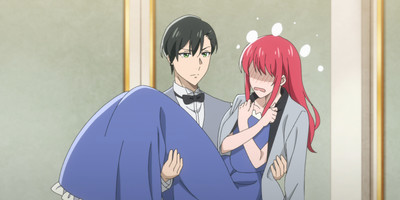 I could see Sophia's social recalcitrance being something that's not as appealing to other viewers. It could be read as her falling into a version of the “not like other girls” trope, where she stands out for being wholesome in a way people like Carissa are not. (Still hoping Carissa's blessing comes from the naked mole rat god or something.) She's snagging all the hottest guys without even trying – Louis and Isaac are openly interested in her, Eddy's clearly not averse to spending time with her, and then she piques the interest of Leonhart, Carissa's date, in this episode. It may well be that's what the original author intended. But Sophia's hunched body language as she tries to disappear inside her own dress is still one of the few visual triumphs of this anime, and still very real if social events aren't your scene.