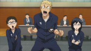 Speaking of symbolism, Haikyu!! is definitely on track to win a Sledgehammer of Symbolism award for all of the bird metaphors. This week Yachi brings up the idea of “mobbing,” which is when a group of smaller or weaker birds surround and attack a larger, predatory bird in order to drive it off. Clearly she's saying that Karasuno is mobbing Shiratorizawa, a metaphor that basically holds up but feels a little too on the nose when we factor in the rest of the symbolism, from the names to the images in the opening theme. On the other hand, if you've ever seen a murder of crows going after an osprey or a bald eagle, it really is impressive – and that's what this episode is as well.