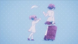 Episode 8 ended with what passes for a cliffhanger by Hanayamata's standards: Naru stumbling and falling during the Yosakoi Club's first stage performance just as she had once before in elementary school, an incident which had ever after left her tremulous about performing in front of audiences. This time, though, she is surrounded by caring friends who help her pick up and carry on and afterwards assure her that they'll be there for her no matter what, even though Hana soon after faints due to a fever. A bigger crisis arises later when the girls learn that they still are not an official club – and thus in danger of being disbanded – because they do not have a permanent staff member for an advisor. (Amusingly, though, their school does seem to have a sanctioned Tank Club.) Seeing the girls' disappointment over this calls up Machi's resentment of Sally, her older sister, over her feeling that Sally abandoned her when leaving home many years earlier (the implication is because she was seriously at odds with her parents over career plans), and rather unfairly applies that to the current situation despiteTami's best efforts to reconcile the two. Fortunately the solution to the problem of the permanent staff advisor and making peace between Machi and Sally turns out to be essentially the same thing.