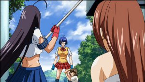Out there in the anime world, there are four categories that titles fall into: those without fan-service, those that contain a small amount of fan-service, those that push for a much higher use of fan-service, and then finally there's Ikki Tousen; a series that throws any sort of legible plot out the window in a bid to shamelessly flaunt over-proportioned schoolgirls that fight each other in a constant set of 'who can get the other more nude' battles.