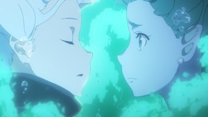 There's a lot of excellent whiplash to this episode, starting with Bell appearing to die before a blast shockwave sends him to the one place we (but not Ryu) know he has a chance of survival, the water, but no sooner has he had a truly beautiful moment with Marie than he's back on the surface, fighting to keep Ryu alive in the face of the Dungeon's last line of defense. Even the rest of his party isn't exempt from the rapid see-saw of stability and danger; all of the unrest in the Dungeon has caused the Monster Rex of the water floors to awaken early, and when we end things, they're facing off against Amphisbaena, a two-headed monster out of Greek mythology, said to have spawned from the blood of Medusa as Perseus flew in triumph over the desert. That makes it kind of an odd choice for the usually very well-researched work of Fujino Omori, because most mythology makes it pretty clear that the two-headed beast is a desert dweller. But it's certainly impressive looking here, with its crystalline head spikes, Cassandra's nightmare made flesh.