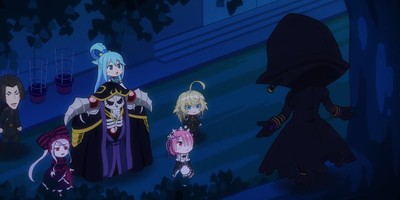 The big joke of the episode is that, while Tanya and Demiurge (i.e., two serious-minded, middle-aged adults) take Shadow seriously, Kazuma, Subaru, and Ainz do not. After all, they're all young, somewhat nerdy guys who fully understand the concept of having “chunibyo.” They see Cid for exactly who he is—something no one from his world has ever been able to do. Moreover, while Kazuma, Subaru, and Ainz would have come to the same conclusion if they had encountered someone like Cid in their respective fantasy worlds, the unique setting of Isekai Quartet allows them to share this—people who truly understand. And for three guys who are normally fish out of water, this has got to be a relief—even if they don't consciously recognize it themselves.