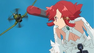 First, let's look at the action part. The writers apparently decided that Izetta and Finé making the journey to Britannia was not worth devoting any attention to, and I can't disagree with that decision. Sure, they could have potentially had some adventures along the way, but this has always been more of a “big picture” story than a story focused on the two of them, and it makes sense that Izetta covertly flying them through unpopulated mountains would draw far less attention than any other mode of travel. (I do have to wonder about what they did once they got out of the mountains and had to cross open water.) The way the meeting of leaders was handled was also reasonable, as was the choice of target for the demonstration. I was starting to smell “trap” even before the ultimate reveal, but that is more due to metaknowledge of what the Germanians are doing and typical plot twists that occur in a story like this than anything the allied leaders could have reasonably anticipated. Even though it was hardly a fresh twist, and even though it allowed the requisite scene of the fighter pilot trying to redeem himself in a souped-up plane, I still loved the fight scene because of how Izetta handled things on the fly. She adapted quickly to the circumstances and smartly figured out an alternate way to use the torpedoes than originally instructed. Izetta's quick thinking is probably as much the strength of this series as the Izetta/Finé relationship.