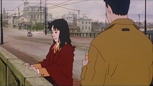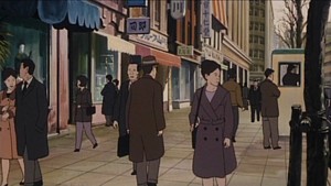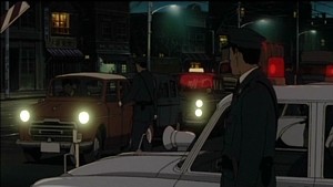 Jin Roh's art is nothing short of spectacular for its time. Sticking with the use of traditional cel animation, Jin Roh took nearly three years to complete, and it shows in its wonderful foray of detail and movements that brings every scene to life. Set roughly in the later half of the 1950's, there is very little in the way of vibrant colours and backgrounds used. In order to achieve an old newsreel look, the animation staffed decided to use paint colours in the film, which ultimately leaves every scene with a slight brownish tone which is nothing short of stunning to see in motion. If there is anything to fault, it would be the scenes that take place in dark areas in which the characters are given a slight glow to distinguish them from the dark shadows of the underground. Although it doesn't detract form the viewing, it definitely could have been handled better than it was. The characters in Jin Roh are given a detailed life-like look which is nothing short of brilliant when it comes to the emotional sections of the film. It is not hard at all to be pulled into the film, and it is then that you begin to see the labour of love that was given to its animation. Although outdated in todays terms, Jin Roh's attention to detail and artistic choices leaves nothing short of a lasting impression that begs to be viewed over and over.