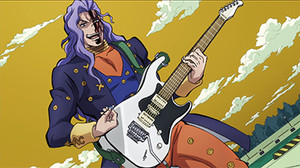 Otoishi is a long-haired rocker dude. He introduces himself as 19 years-old (I was going to call shenanigans since his design didn't scream “teenager”, but then again this is JoJo's) and that his dream is to become an “ultra super guitarist”. Otoishi's goal is to swiftly kill Josuke and Koichi, and then use a motorized model airplane to transport Chili Pepper to Joseph's boat. What entails is a pretty standard fight among Josuke and Otoichi's Stands, with the usual fists and trickery abound. The two seem like decent adversaries for each other, since there's a decent amount of one-upping going back and forth as they use their environment to gain the edge.