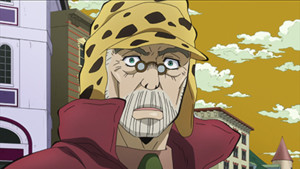There's something I find very endearing about this old, old Joseph Joestar. Every now and then we get the usual outburst of goof from him (I think he has a single "Oh My God!" in this episode), but for the most part he's far too slow and tired to be his usual self. There's something a little depressing about it, with the realization that even the lively Joseph isn't able to escape the throes of aging and eventual death, but at the same time there's a peacefulness here. It's a chance for us to accept that this is somebody else's story now, and the times, they are a-changin'.