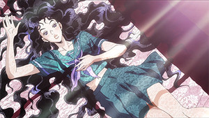 Yukako is a textbook yandere. At some point, she decided Koichi was "the one" and started showering him with affection and psychotic attention. She's making him lunch, making him ugly sweaters, and even making devious murder attempts on perceived competition with her devilish Stand-controlled hair. We've got a scene where one of their classmates is being tied up, strangled, and set on fire for daring to take some of Koichi's school chores on his behalf.