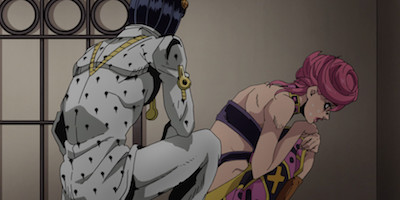 This episode really feels like a big deal. I know King Crimson's time-erasing powers are a big meme, but for now its cryptic nature is part of what makes it threatening. The boss punches Bruno through the chest, and I genuinely can't tell if we just had a major character death. Diamond is Unbreakable ended with very little blood on its hands, so I actually don't know what stakes are even on the table anymore.
