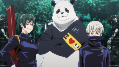 • This week's post-credits skit involves Zenin roping Megumi and Nobara into an investigation concerning Panda's scent. The bear is deeply offended that his animal musk would be compared to Inumaki's odor, especially seeing as Inumaki has made a habit of avoid baths at all costs. To the girls' shock, Megumi casually notes that Panda's daily regiment of not sweating and blasting his fur with Febreze has him smelling like sunshine. This is funny, but nowhere near as funny as how seriously Nobara takes getting a whiff of Eau du Panda, looking like a bear sommelier and everything.