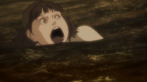 Maybe it didn't have to be this way. I can see how the idea of attempting to send the dead off on a raft down a river only to have them ram into a bridge and sink might be shown as ominous or harrowing in a series of manga panels. In motion, however, especially the cheap sort of motion provided by Junji Ito "Collection", it's nothing short of a goofy punchline. When the supposedly-spooky villagers at the center of this practice brush off all attempts to fix this issue as “Can't change it, that's tradition”, the silliness of the idea seems even more obvious; there's no horror at all when we're stuck laughing at these idiots and their inability to change. To this end, we at least glean some sympathy for Osode, the old lady at the center of this story, when she insists on having her death bypass this dumb contrivance. So if nothing else, the sheer goofiness of this does the bare minimum to keep your attention.