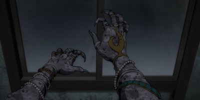 This is especially clear in this first, shorter segment of this episode, ‘Window Next Door’. The core concept is a simple and strong idea for a spooky story, as focal character Hiroshi finds himself beset by the unwanted advances of a creepy old woman next door. For just the briefest of moments, this story looks like it might nail the atmosphere it's going for. The sound effects and mixing continue to be one of the isolated effective elements of this series, and the build-up as Hiroshi hears the naughty nudging of his nighttime neighbor is decently evocative. But then the actual reveal happens, and it's just a complete flop.