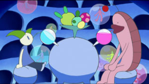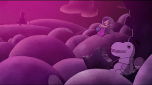 Anime boomed outside Japan in the last decade, but it permeated the public consciousness long before, and not only in the minds of those who have arguments over whether 'otaku' is a nice thing to call yourself. You can see this initial influence, even though it may be extremely superficial, in animation, comics and pop art--short, kohl-eyed cartoon heroes bearing more resemblance to Astro Boy than Naruto or Haruhi, piloting blocky robots with burning spirit against backdrops of psychedelic colour. Kaiba gives this impression at first glance. Its cartoony character designs, with big hands and goofy sci-fi outfits, hark back to a simpler time, resembling characters Osamu Tezuka, Shotaro Ishinomori or Walt Disney's contemporaries may have created. But the setting they inhabit pays no heed to any anime tropes I can think of. Of all things, it reminds me the most of the claymation computer game The Neverhood. Not a single planet is a perfect sphere. Buildings are asymmetric, organic shapes, as if they grew like mushrooms in the ill-defined landscapes. Colours veer from dull yellows and browns to outright garish, some of the CG effects are obvious to the point of looking cheap, and many scenes are intentionally sketchy and jitter like a nightmarish Japanese version of Roger Ramjet. If you're into anime for hyper-violent fight scenes and moé, just the DVD cover might be enough to turn you off. The true beauty behind Kaiba's visuals and, I suspect the reason it won an award, is not in how many frames of animation it has, but in the sheer amount of imagination its staff poured into it, and how consistent it remains nonetheless. Lauding such a strange anime for consistency may sound odd, but the bizarre imagery--from fields of blissed-out party animals looking like a little kid's picture, to guns that turns victims to sludge--is as well-thought-out as it is distinct, giving the worlds and characters of Kaiba surprising depth and coherency. Some stories aiming to be surreal or dreamy merely instill the same emotion within me that most of my own, real dreams do, i.e. baffled irritation. Conversely, even at its strangest, Kaiba's art and writing adds to its world-building and mythos, achieving a dreamlike quality without giving the impression of being random for the sake of 'LOL random'. Likewise the soundtrack, with simple but effective music and dreamy, sorrowful vocals, is a perfect match for the setting and the plot's themes of nostalgia and loss. In Kaiba, memories have physical form and can be shifted from body to body. The rich blithely swap their traumatic memories and ugly bodies for fashionable bodies and blissful memories, flouting the law to buy or steal them from the less fortunate. The first half of the series follows the main character, an amnesiac named Warp, as we learn about his galaxy the way he does, travelling between planets and meeting other troubled by memories. Episode three in particular hammers home the terrible ramifications of the setting--but Warp is less interested in 'fixing' the situation than he is in the blurred photo of a girl in the locket around his neck, the real heart of the story. For in the end, though the identity of Neiro, the girl in the locket, is quickly revealed then not expounded on, Kaiba is a love story. I initially passed the series off as another in the well-established 'protagonist wanders aimlessly and watches people suffer' genre. At the half-way mark however, previously minor characters reveal their motivations and what had seemed like off-hand trivia or things put in because they'd be fun to animate take on very real significance to Warp and Neiro. As the pieces come together, the series builds a sense of urgency until I found myself watching the second DVD in one sitting, eager to know what would become of them. Some may find the denouement anti-climatic, with several plot threads left dangling. One aspect of the final episodes, foreshadowed only slightly, felt a little cliché and tacked on, in my own opinion, but this didn't impede the overall satisfaction I felt as I watched the end credits. Instead of a huge flashy finale (though the climax is plenty action-packed) or the creepy dwindling away seen in one of the director's earlier works, Cat Soup, the story simply comes to an end. I feel this ending was perfect, but it took me a while to come to this conclusion (part of the reason this review took so long!). This is a series that may require deep thought or repeat viewings to truly appreciate. Siren Visual's DVD release is very bare-bones with no dub track and no extras save for trailers, but the release's only real flaw is occasional quirks in the subtitles, with some Japanese text going without translation. A series relying heavily on its art might have done well with a Blu-ray release but it is understandable that this is probably not viable for a series with such niche appeal. In any case, Siren should be lauded for bringing Kaiba out of Japan. Those who enjoy unique visuals, reflecting upon stories, and something a little different from the norm would do well to pick up Kaiba and support titles that show the full gamut of Japanese animation, to anime nerds and those who watched Astro Boy when they were kids alike. |