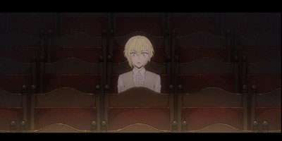 Misaki's friendship with Defrott forms the backbone of the episode, and it provides a ton of important context for both of their relationships with Maeda. On the surface level, it's just very sweet. The reclusive Defrott learns to open up to another person, and Misaki finds a friend and teacher who cares about her irrespective of her father's rank in society. To this effect, the most important scene is their discussion of Salome's monologue. At Defrott's behest, this is the point at which Misaki stops treating him like a child, as she instead internalizes his pointers as her more experienced peer. I love, too, how the voice actors here craft their performances. Misaki's first read of Salome really does sound as amateurish and overwrought as a “threepenny play,” while Defrott's rebuttal immediately sounds much more nuanced and mature. It's also a bit spooky, because as soon as he begins, we recognize the cadence that Misaki eventually adopts and evokes in the premiere, emphasized by the identical gestures and storyboarding. It drives home not only the craft of this anime, but the craft of theater in general, and all the beautiful subtleties of acting.