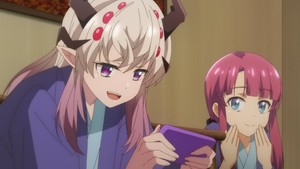 So it comes off like something of a wasted opportunity that Miss Kuroitsu can't seem to mine much particular comedy from such a situation. This should've been a perfect chance to see more outsized personality antics from several of these executives, many of whom we're meeting for the first time in this episode. But we hardly see them cutting loose, and what we get instead are stretches of the characters in relatively low-key hangout situations. Maybe that itself is supposed to be the 'joke': seeing these elemental embodiments and hulking animal-people just kind of chilling out in hotel robes. But the series has already worked the sight of tokusatsu monsters just vibing into its overall framework, so there isn't any fresh humor or entertainment value derived from seeing these weirdos sit around and play video games.