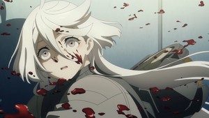 It also helps that the production team pulled all the stops for the mecha animation. It's not quite stellar all around—some crucial scenes appear to be missing their in-between frames—but there's still a firm sense of weight to all the mechs and the scenes of wanton destruction. The money shot of the episode, where Aerial fires off its beam attack, is eye-popping with its intricate linework. Episodes like these make me glad that Sunrise is still dedicated to 2D mecha animation. Also, the character expressions throughout episode 12 had much more impact than usual, conveying strong emotions like shock and grief without slipping into melodramatic exaggeration. I won't forget Suletta's blood-stained smile or the look on Miorine's face for a long while.