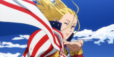 As somebody who always prefers when MHA's human drama is at the forefront, you'd think I'd be turned off by that, especially when so much of this episode revolves around a character we just met, and whose only connection to the rest of the story is a five-second cameo from the anime's first movie. Yet, it works for me as a big, loud reminder of the actual scale of this conflict. The crumbling of superhero society was a really compelling framework for last season's drama, and it only makes sense that an entire country going to hell in a handbasket would draw attention from the rest of the world. I might not know much about Star & Stripe as a character, but her presence hammers home how much is at stake. If All For One manages to topple the vestiges of Japan's heroes and claim One For All for himself, the rest of the world will be next on his to-do list.