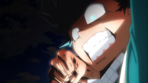 “GO!!” is, ironically, the last build-up episode of Season 4. While the final moments indeed show the assembled heroes at last clashing with the Shie Hassaikai, the majority of episode 70 is about the simmering emotions of the cast as they're forced to wait for the right opportunity to strike. The weakest portion is the extended montage of Pro Heroes covertly