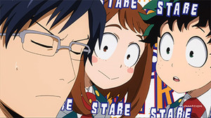 Before that, we have a few more school antics to get out of our system. Aizawa, too slothful to spend his day teaching, appoints his students with the responsibility of picking a class representative. Everybody starts volunteering for the job immediately (is class rep even that popular a position in Japanese schools?), until Iida silences everybody with the suggestion that it should be a democratic decision. Lo and behold, Midoriya is picked by the few anonymous votes that weren't just various classmates picking themselves. It's clear that Iida and Ochako were among his votes, though maybe Midoriya isn't actually best for the job.
