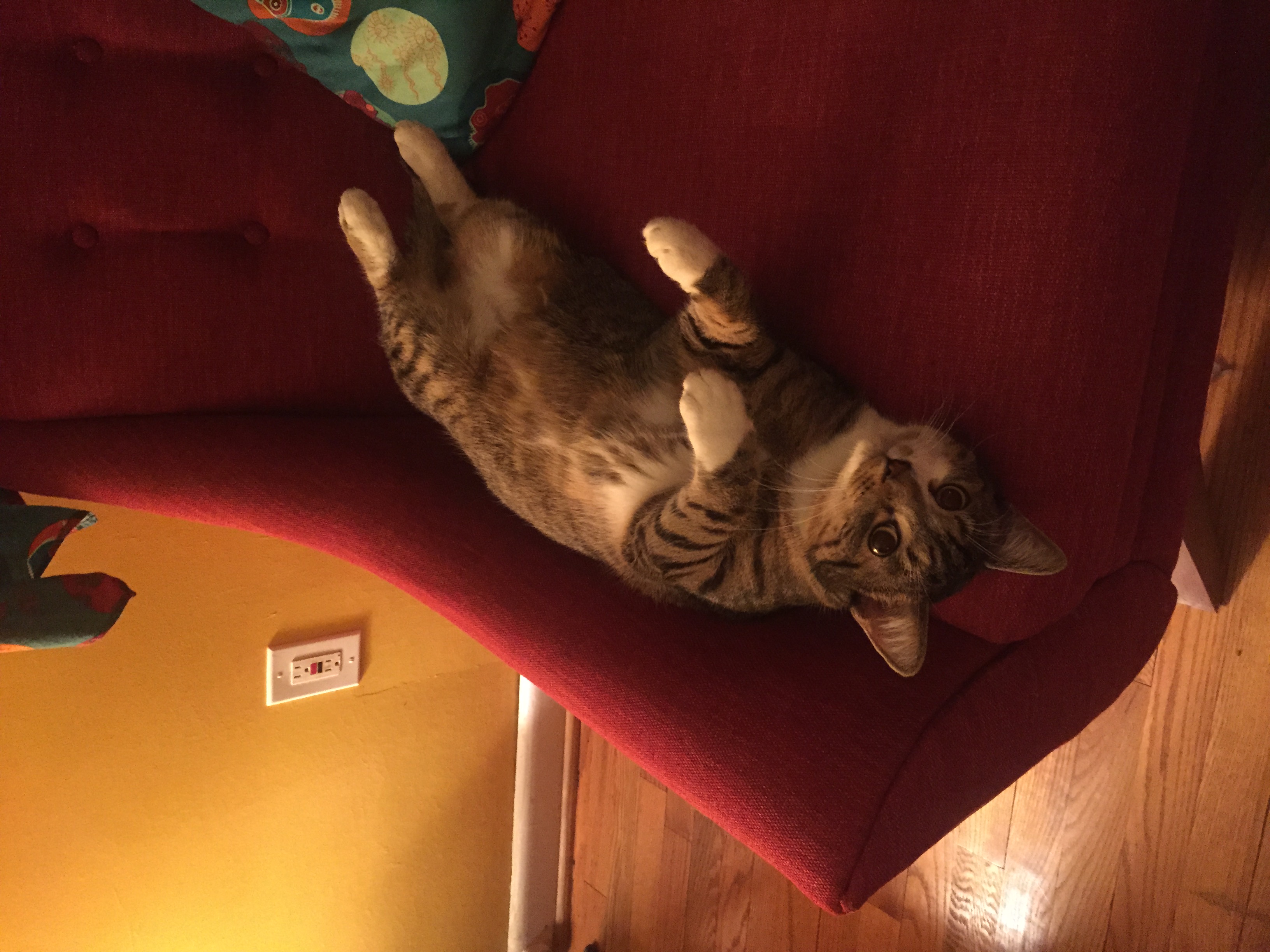 Miz Tora is a scruffy adult cat who looks like an orange or brown tabby. If she's orange, that would be uncommon but not impossible, as the majority of orange cats are male. However, orange female cats are genetically possible, unlike male calicos or tortoiseshell cats, which are only possible through genetic abnormalities. (The reason for this is that the orange gene lies on the X-chromosome in cats. Cats need both orange and not-orange to be a calico or a tortie, which means they need to have two X's.) I'm a little biased toward her being brown myself, because of my own feisty brown tabby, Ollie. Either way, Tora is an important mentor to these tuxedo kittens, along with the mysterious but kind one-eyed black cat Kuro. They teach them how to hunt and how to stay away from predators like crows.