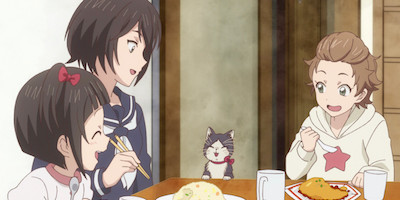 What most amused me was the similarity between Subaru and Haru's reactions to all these wild kids. (She seemed pretty happy during that dinner scene, but it turns out she really just wanted food. Of course.) There's a fun conversation to be had about whether people's personalities can be detected through their preference for pets. While I've certainly met gregarious extroverts who love cats (such as my stepdad) and taciturn loners who prefer dogs, it does seem to be that "cat people" and "dog people" connect to these animals based on seeing ourselves in them. It can be hard to explain what's so lovable about cats to dedicated "dog people", because many of the qualities they hate in cats are what we find so endearing, like their prickliness, pickiness, and unpredictable nature compared to the consistent affection and playfulness of a canine. Since they're so small and fluffy, there's just this je ne sais quoi to watching a cute little fuzzball coldly reject someone or comically overreact to some small irritation. But I also think lots of cat owners see ourselves in the animals—and perhaps they can make us feel better about not being the most outgoing or adventurous of people.