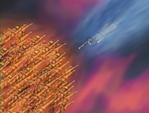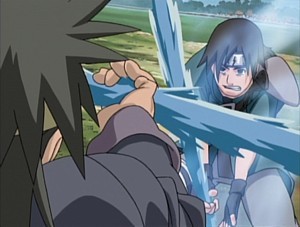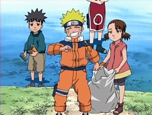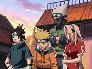 The first of the two specials on the disc is Protect the Waterfall Village, a 40 minute action romp which plays out one of the most common and predictable plots to ever grace the face of anime. After finishing a mission to escort the leader of the Village Hidden in the Waterfall back to his land, Naruto and the gang decide to stay a little while to help clean up a mess they find near the village. Kakashi is urgently whisked away before the village is suddenly attacked by a group of rogue ninjas bent on obtaining the village's sacred treasure, Hero's Water. With Sasuke and Sakura captured in the attack, it's up to Naruto to change the cowardly village leader Shibuki into a hero before it's too late.