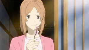 I'm so glad that Natsume has a friend like Taki, who may not be able to see yokai without help, but always believes Natsume when he sees one. In season one, after Natsume comments on the strange writing on the blackboard and Nishimura doesn't see it, Natsume would have simply turned inward and dealt with that struggle himself. Now he has a kindred spirit in Taki, and Natsume rarely has a problem he can't tell somebody about. Still, it does happen, because now Natsume is saddled with natori's revelation that the magic circle Taki uses is a forbidden technique. It's easy to see how happy using the magic circle makes Taki, especially when it allows her to help a yokai solve a problem. Look how she treasures the plum blossom that yokai left as thanks. There's always a light, sweet side to the episodes Taki features in. She alone appreciates Nyanko-sensei's fluffiness, and she's eager to help a yokai Natsume describes as “cute.”