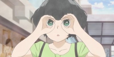 Sonezaki, meanwhile, is buying into the idea that sex is filthy and shameful, even as she resists the idea. She's interested, but ashamed of her interest; she runs away from a boy who tells her she's attractive and seems actively afraid of being seen as attractive. She wants to be able to see sex and sexuality academically, but she's having trouble with that, as we can see this week when she demands that she gets a paper wrapper to hide her perfectly innocuous fashion magazine leaving the bookstore. (She's even reading it specifically in the foreign classics section of the store to hide what she's doing – we get a clear view of The Great Gatsby and Atlas Shrugged on the shelves.) She's trying so hard to be seen as serious.