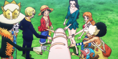 We all know the ritual at this point: end of arc celebration time! The Straw Hats do exactly what you would expect – there's the big feast, comedic quarreling over the spoils, and tearful goodbyes to the new friends on the island. None of it is surprising, but it's always welcome regardless. This is the cathartic ritual of the end of an arc of One Piece, a stable constant in an ever-changing world. If no one else got me, I know Luffy screaming “Meat!” and “I will be King of the Pirates!” did.