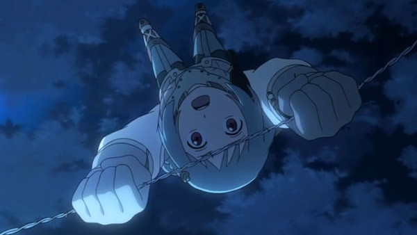 Patema Inverted isn't really about much more than flying. It lends itself to all of the allegories that science fantasy welcomes, but the worlds it builds are a bit too familiar. Age's stifling society is a standard regime in its quasi-religious propaganda, its deadened citizens, and its ranks of red-eyed Gestapo-like soldiers apparently on loan from Mamoru Oshii's Kerberos Panzer Cops films. Patema Inverted is the first Yoshiura creation with a dedicated villain, and for this the director gives us yet another power-mad dictator with a penchant for sadistic experiments. But Patema Inverted doesn't have to dive into fractured psyches. Yoshiura tells us just enough when its characters embrace upside-down as they leap from an aeronaut basket, when Age backs to the edge of a skyscraper, when Patema scrambles in a reverse-gravity struggle for a knife, or when the movie rotates its view and turns the night sky into a bottomless chasm. Patema needs rescuing and Age has simple motivations, but both of them grow into the likeable explorers of new territory. They're far more memorable than the leads of Green Legend Ran, Origin: Spirits of the Past, The Boy Who Saw the Wind, and other films that couldn't escape Miyazaki's shadow. Patema Inverted may not have the sci-fi introspection of Yoshiura's prior works, but it has his talent for striking imagery and enjoyable twists. Like its heroes, Patema Inverted succeeds by refusing to slow down or dig in deep. Gravity defiance pumps new life into a routine tale, and Yoshiura's endearing style and kinetic pace keep it aloft where a weightier, pensive movie would come crashing to the earth in a tangle of heavy-handed messages and backstory. Patema Inverted doesn't need such excuses. When you're flying, it doesn't matter why. |