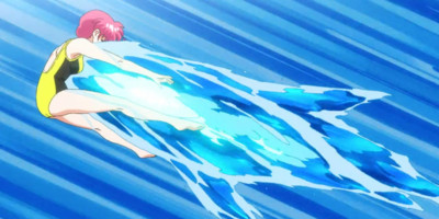 However, water is hard to animate well. Fluid dynamics are tricky, and the arc's climactic battle takes place mostly on and in the ocean. Instead, the original anime's staff relocated the setting to a ski resort, transforming the martial arts watermelon race into a competition of carrying snowmen on skis. Not that the animation team was really up to the challenge of that either, but as the solid form of water, at least snow tends to stay predictably in one spot. Although I generally encourage anime to make smart departures from their original manga, the mountain setting felt like a step down. Imagine if I were the kind of person to get worked up about changing swimsuits to puffer jackets!