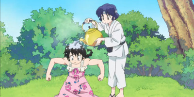 This also might be the worst thing Genma has ever done, as we slowly learn throughout the first episode. Ukyo first appears on a stormy night, confronting Genma and calling herself “the child he left behind.” Akane, who happens to overhear, naturally assumes that Genma had an affair that produced a baby, which she then tells Ranma. Ranma pretends to be pleased that a guy with a mug like his dad's managed to convince more than one woman to sleep with him, but knocks Genma over next time he sees him.