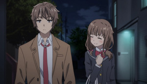How ongoing efforts to overcome her social anxieties are handled with more thought and less sensationalism than usual, to the point that most of this episode passes without any assistance from the soundtrack. This was a Wise Production decision, as it isn't needed for these scenes to have their impact. The care and detail in her speech patterns and body language shifting when her original personality returns at the end of the episode is also handled skillfully; we don't need Sakuta to tell us that she's changed. I'm honestly not sure how this whole part of the story could be handled better.