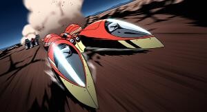 Despite it's looks, the plot behind this slick race-fest turns out to be a rather simple one. After the qualifying races known as 'Yellowline' have run, the commission behind it all has decided that the championship 'Redline' race is to be held on Roboworld, a planet whose leader vocally threatens to destroy any and all competitors who decide to go along with this race. Not that would stop these gear-heads from trying their luck. And thus the race goes on ahead and we follow our hero JP as he sets out to not only win the race of his life in a modified Transam, but to also chance his arm at winning fellow racer Sonoshee's love. While there's certainly a lot more that goes on in between and during the Redline race, half the enjoyment is in watching these unfold yourself. Visually, Redline is undeniably gorgeous. Thanks to its completely hand drawn approach, every frame from the desert opening to the spectacular night time finale is full of vibrancy and detail. Backdrops, vehicles and even the character art all reap of an inherent coolness that constantly tries to outperform itself with every scene. The influence of Takehi's previous work Trava - Fist Planet is also hard to miss, with both JP and Shinoshee sharing many looks and traits of their predecessors. With a clear crisp Blu-Ray transfer, Redline is all but solidified as one of the best looking releases around. It really is a treat for your eyes.