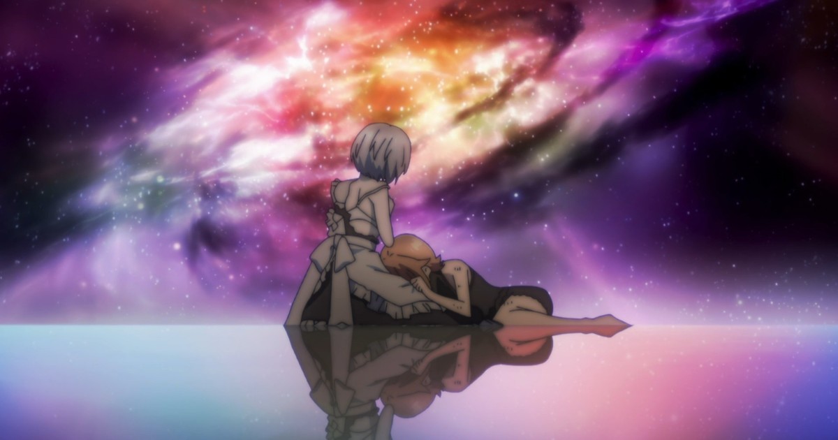Unfortunately, Milkit's damage extends far beyond this attempted assault. In response to Flum's heartfelt concern, she can only apologize and unperson herself. This is the limit to Flum's gallantry. In an image that echoes Utena's attempt to pull Anthy out of her coffin, Flum tries to pull Milkit's hand across that cosmic barrier, only for Milkit to let go, resigning herself as unworthy of a savior. Later in the episode, we catch a glimpse of Milkit's past master berating her with cruel words that Milkit repeats in the present. Her surface injuries are just that, and Flum can't heal her with herbs alone. This is precisely what I want out of their relationship—two “cursed” women doing the difficult work of undoing the harm others inflicted on them.