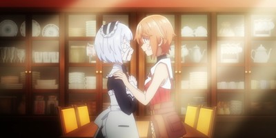 Seriously, I've been asking for this! Flum and Milkit desperately needed downtime together to better establish their chemistry, and that is the exact function this episode performs. After a few establishing shots, the first thing we see is the two of them cuddling in bed. Their breakfast mishap is no less adorable. And the part where they say each other's names back and forth at least a dozen times would be sickeningly saccharine if not for the darkness of the previous episode. The sapphic levity is a sign of healing.