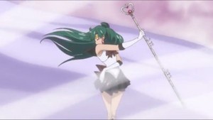 This is a pretty full episode, which unfortunately means that nothing really gets the time it needs/deserves to be developed well. There are a lot of scenes of people standing/floating around while explanation or dialogue happens, but in general the art itself looks a bit better, with fewer cases of off-model derp face in the background. The subtitles actually look a little better for the first half of the episode before having their usual issues towards the end, so that's a good sign. (Let me pretend it is, anyway.) We're really coming up on the climax of the Death Busters storyline, so with any luck things will flow more smoothly next week as the focus (hopefully) shifts more to Chibi-Usa and Hotaru. Sailor Saturn can't be held back much longer, and it's looking like a little rebirth is just what this story arc needs.