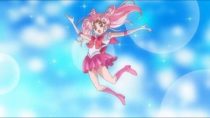 Another positive aspect of this episode is the pacing, which takes it slow when it needs to and adds tension when that will enhance the moment. There's a bit of drag right after Pluto stops time, but for the most part this uses pacing very effectively, which can also be said about the music...when Pluto collapses. Other parts tend towards the distracting, showing an off-kilter balance that we see reflected in other areas as well. The art goes from beautiful to decidedly wonky, all the more noticeable this week because the good parts look so nice. This is perhaps best seen in the two transformation sequences: Sailor Moon's is the usual CG mess while Chibi-Usa's is fluid, with only one weirdly bent ankle to really mar it.