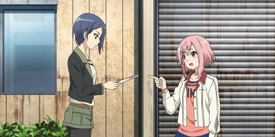 There are also plenty of comedic moments that the movie-filming plot provides. Obviously, its slowly-emerging status as a zombie film is the most amusing core element. That also leads to great bits like Kadota's surprise turn as a zombie (he really gets into the role even after being disappointed that he has no lines) to the laugh-out-loud tackling of the lead actor at the end of a scene. It's nice to know that Sakura Quest can dispense plot setup without abandoning the sitcom antics that make its less serious portions so fun to watch.