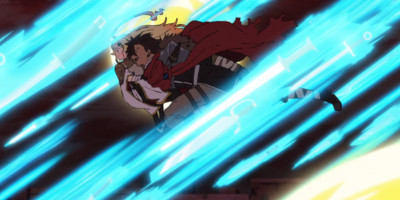 And everything looks terrific, too. The animation has been stellar all season, and that's true this week as well. I appreciated the slow-motion deaths that the metal arm villain lady and evil artillery armor guy got, both involving them being tossed in the air and put in high-fantasy air fryers. The shots of Xylo reflecting on his past life spliced in with the current moment were well done, adding a bittersweet note to an otherwise boisterous victory march. Catharsis is the special word of the day for sure.