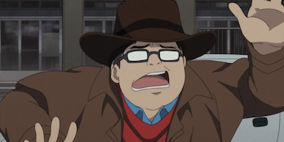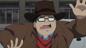 This leads to the best comedy sequence in the entire series, which is no easy feat, and of course it comes from Kinoshita, the show's funniest character. He finally gets to play the cowboy from his bizarro Exodus ending, as he dons boots and a ten-gallon hat for his trek to the boardroom. He uses his MIGHTY BELLY POWERS (not kidding) to fend off everything from flying golfballs to the editor roadblocking him. These few minutes left me a mess of uncontrollable laughter and cheering. If anyone doubted that Kinoshita was the TRUE hero of Shirobako, this sequence should dispel those thoughts and leave you speechless. The frenetic animation and cheesy western scoring don't hurt, either.