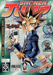 The already impressively-large SHONEN JUMP grows even bigger with its second issue, adding another forty pages of material, and a new serial to the lineup. But before the reader can get to the new feature, Viz starts off with a couple "behind-the-scenes" articles. First up is an interview with Kazuki Takahashi, creator of YU-GI-OH. Next is a supposed "Self-Help" piece titled "The Practical Ninja" that offers a humorous look at how the ancient art of ninjutsu can help you in your everyday life. Although I'm assuming this was aimed at a younger audience, I actually found some of the gags amusing (example: when directing the young ninja on how to pick up a plastic baby when his hands are full, the piece admonishes, "You could set down the groceries, but that would be an admission of defeat.") Finally, we arrive at the debut of the new manga... NARUTO: This series depicts the (mis)adventures of Uzumaki Naruto, a young ninja in training. Better at getting into trouble than mastering his ninja studies, Naruto is in danger of failing his finals and not graduating. However, over noodles with his instructor, Master Iruka, Naruto reveals his desire to "surpass everyone who came before me." At this point, I was annoyed with Naruto. I have little patience for people who think they can achieve success without having to work for it, as though they're entitled to fame and fortune. Sure enough, Naruto fails his dopplegangers final, but Mizuki (another instructor) wants to pass Naruto anyway. Thankfully, Iruka demands that Naruto be held accountable to the same standard that all the other students were required to meet, so Naruto fails. And it's from this point that the adventure really begins, as Naruto steals an ancient scroll, teacher(s) and student fight, and we learn that everyone is not quite what they first seem... I really enjoyed NARUTO, which showed once again that the series in SHONEN JUMP aren't always what they initially appear to be. At first I thought that Naruto was going to be the story of a rebellious troublemaker with no respect for authority, but, as it turns out, Naruto has quite a few noble characteristics buried beneath his tough exterior. The artwork also makes NARUTO a pleasure to read, with the various visual gags (such as the "Ninja Centerfold" trick) and the dynamic energy contained in Masashi Kishimoto's kinetic lines. I look forward to spending more time with Naruto and his cast, especially now that Naruto's secret has been revealed. Ironically, just when Naruto is beginning to feel accepted for the first time, he may now find himself shunned more than ever before. ONE PIECE: Monkey D. Luffy is all grown up now and off in search of his very own pirate crew. Luffy first runs into a gang of pirates led by the nasty Iron Mace Alvida and has to fight his way free from them. In the process, he inspires spineless cabin boy Koby to stand up to his cruel oppressors. Moved by Luffy's indomitable spirit, Koby joins Luffy in his quest. Luffy and Koby's first stop together? The Navy Base, where they plan on recruiting Roronoa Zoro, who just happens to be imprisoned there. Luffy and Koby learn the truth behind Zoro's imprisonment and determine to free him so they can ask him to join their pirate crew. Another fun chapter of ONE PIECE. I'm quickly becoming a big fan of Eiichiro's exaggerated cartooning. His fluid style certainly fits on a strip where the main character is able to stretch like rubber. YUYU HAKUSHO: In this chapter, Yusuke visits the underworld and learns about the test that could return him to the world of the living. Meanwhile, back on the mortal coil Keiko and Yusuke's mom discover that Yusuke's heart is still beating within his body. In order to communicate with Keiko one last time before the test commences, Yusuke is forced to possess the body of his nemesis, Kuwabara. This was an amusing chapter, with plenty of fresh takes on the "ghost returning to communicate with the living" plot to make it enjoyable. The basic storyline is further helped along by charming artwork, goofy sight gags, and surprisingly touching moments. The tough-yet-tender Yusuke could quickly become a favorite character of mine. SANDLAND: A short chapter this month (only thirteen pages of story) finds our crew beset by a gang of thieves. Sheriff Rao also begins to reconsider his belief that demons are the cause of all of humanity's woes. Not much to talk about in this chapter: The characters and artwork are still as engaging as in last issue, but the chapter ends almost as soon as it has begun. Ah, well - there's always next issue to look forward to for more SANDLAND goodness. DRAGON BALL Z: I'm still feeling self-conscious about my inability to grasp all the characters' relationships to each other. Thankfully, this issue doesn't require much in the way of understanding allegiances, other than: This is the good guy; those are the bad guys; watch the good guy beat up on the bad guys. Oh, there's also the mystery of just who the good guy is: He's obviously a Super Saiyan based on his abilities, but this fact causes consternation among the rest of the cast, since there are only supposed to be three Saiyans, and those are apparently all accounted for. To be honest, this series still isn't doing much for me, but I'm still willing to give it time to grow on me. YU-GI-OH!: Three more chapters involving dark justice meted out by Yugi's dark alter ego. Miscellaneous: Once again, SHONEN JUMP is packed with additional features between the manga. In addition to the features mentioned ahead of NARUTO, there are also: A quick overview on several romance manga; a short article on White Day, Valentine's Day's counterpart holiday in Japan; an interview with the voice director on the YUYU HAKUSHO anime series; a "Manga Explorer" article discussing "Rurouni Kenshin"; letters and fan art; and of course, several anime, toy, video game, and card game summaries. Overall: SHONEN JUMP continues to put American comics to sha