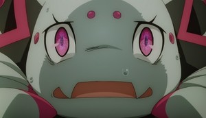 The spider side is, as usual, the livelier one. Kumoko certainly seems to be having fun when she is not scrabbling for her life, and all of the little comedy bits that the adaptation is working in are nice bonus touches; even the gusto with which she eats is entertaining. (Has any series in recent memory emphasized this so much?) Probably most appreciable about her situation right now is how the series consistently maintains the threat level. The dangers she faces continue to be convincing ones, whether the danger in question is the new dragon, the heat and lava of the Middle Stratum, or the fireball-spewing and catfish-like critters in the lava. She may not be harried to within an inch of her life this time, but she still has to work for her victories. The CG use this episode seems a little better, though I can still see it bothering some viewers.