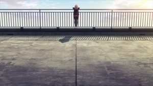 Being right in the middle of these kinds of personal arcs with all their growing pains, however, means this represents a difficult point for pretty much everyone. Yume's sulking and as uncertain as ever, sure, but she's downright collected compared to the mess poor Koyomi devolves into this week. I had remarked earlier that it felt like they cut short his plot developments with his old classmate Inamoto, but there was actually a pretty clever reason for that: At least in the present, there's hardly anything else to tell, as this really is just an instance of Inamoto catching up with someone she considers an old friend. The problem is that Koyomi's stunted neuroses have vastly overestimated his old friend's intent, not unlike an over-analytical anime critic also assuming this was leading to more of their story. And make no mistake, it's absolutely painful to watch Koyomi struggle and stammer in the presence of this girl he's still carrying a torch for and her doofy, if good-natured husband, then retreat into a miserable rain-soaked bender to rant about how she was ‘leading him on’. The man who was previously depicted as blending into the static clutter of his room with his similarly directionless cousin Chise suddenly feels totally out-of-place in any of these outside scenarios with other characters, and Dynazenon's consistently clever composition keeps emphasizing that level of social awkwardness.