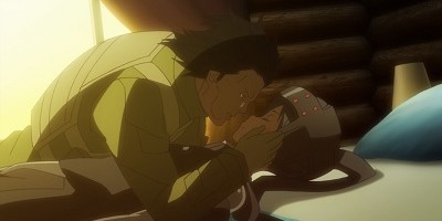 M kissing Pito was also a nice scene, especially given all the crap he's had to put up with from her. The suggestion that one or both of them might deliberately be using NerveGear to simulate the genuine risk of death is a stunning twist, and it raises questions like how the heck they got their hands on still-functioning ones. (Kazuto had his own connections, but I would have thought the others would have been confiscated.) On the other hand, it does explain M's seemingly over-the-top reaction to LLENN threatening to kill him a few episodes back. I also should have expected the photon sword to come up again, as Pito had to be aware of its use by Kirito in the last BoB tournament. The way it flies in the face of normal GGO logic is a perfect fit for her, especially given her established penchant for sampling various different weapons. It also makes sense dramatically, as it turns her upcoming battle with LLENN into a more potentially lively short-range affair. In fact, I wouldn't be surprised if she chose it specifically with fighting LLENN in mind.
