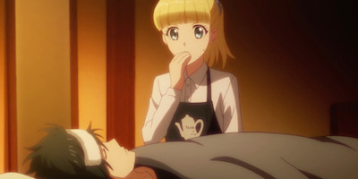 So let's talk about that big kiss. I could see it coming as soon as Teresa was in the room with him alone, although I was a bit surprised she actually went through with it. He's sick and unconscious, after all! This should be a big moment that prompts a lot of conflicting feelings, so it's disappointing how long Tada Never Falls in Love waited to give this couple much romantic build-up. Now that they're on the cusp of a breakthrough, it isn't nearly as satisfying. I picked this show because its first episode did such a good job of building anticipation for this couple, but it mostly spent the seven episodes to follow on barely-related shenanigans.